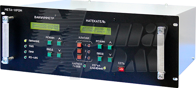 Device produced by Meta-chrom represents vacuum gauge of ionization-thermocouple type with continuous range of pressure measurements. System “automat” of sensor switching and system of emission current control of hardware-software type are used in the device. Digital device is supplied with built-in display, which displays the set and measured parameters. Unit control can be performed either from keyboard located on the corpus of the unit or remotely from PC through interface RS-485 (for control of electronic leak valve of gases).