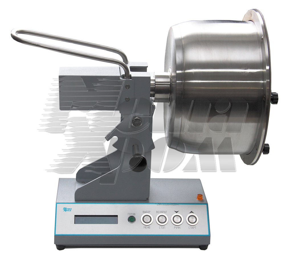 The design of the device provides three fixed positions of the nozzle for quick loading, testing and unloading of the test sample. The device has low consumption (up to 18 W) and low weight (12.5 kg). The use of a stepper motor with a gearbox provides a small error in maintaining speed (± 0.3 rpm).
