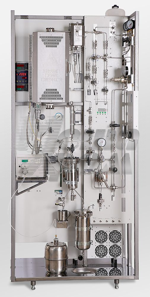 In the photo: Universal bench laboratory unit for the study of the processes of basic organic synthesis in a reactor with a fixed catalyst bed
