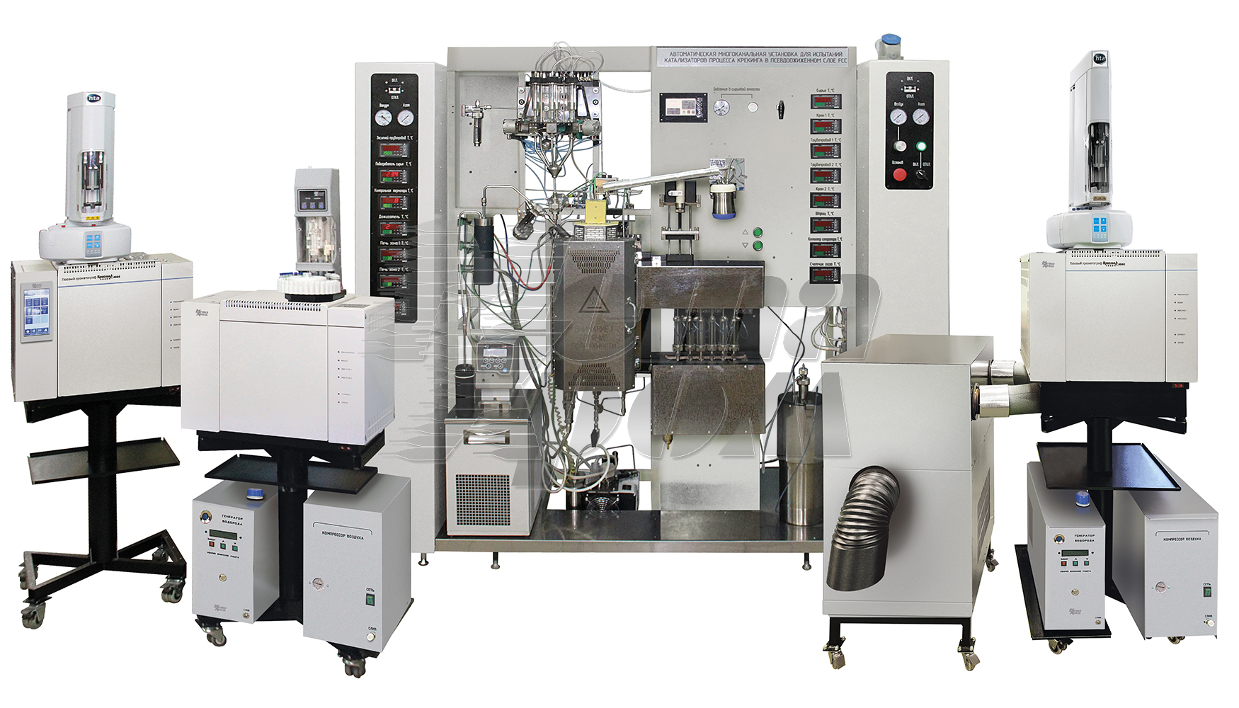- Testing of the cracking catalysts selectivity according to the cracking products composition; calculation of gas and coke factors at various catalyst/feedstock ratios.