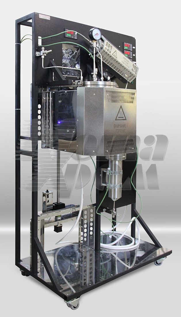 The instrument is designed to simulate and study pyrolysis processes which pass at elevated temperatures and pressures in a stainless steel reactor made in the form of a flask. The installation allows obtaining experimental data, selecting and optimizing the parameters of the technological process, testing various options for raw mixtures, determining the material balance of the process, the characteristics of the process products.