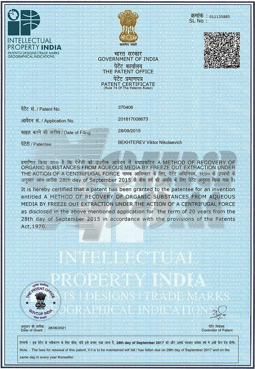 The main advantages and important qualities of the method of extraction freezing with centrifugation of EFC (RF Patent №2564999/2015) in comparison with existing extraction methods: