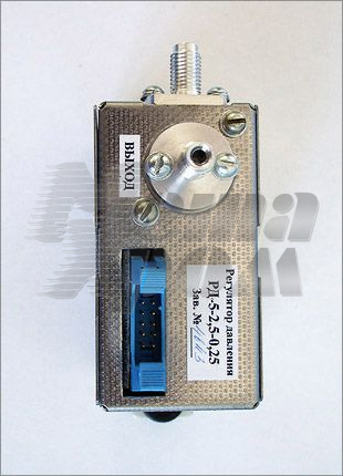 Electronic pressure regulators PR-4 (setting of output pressure is done using the built-in variable resistor) and PR-5 (setting of output pressure is done using the chromatograph control system) are designed to maintain the pressure at a given level in the chromatographs of the "Crystallux" series. The conversion factor of the pressure meter - 10 V/MPa.